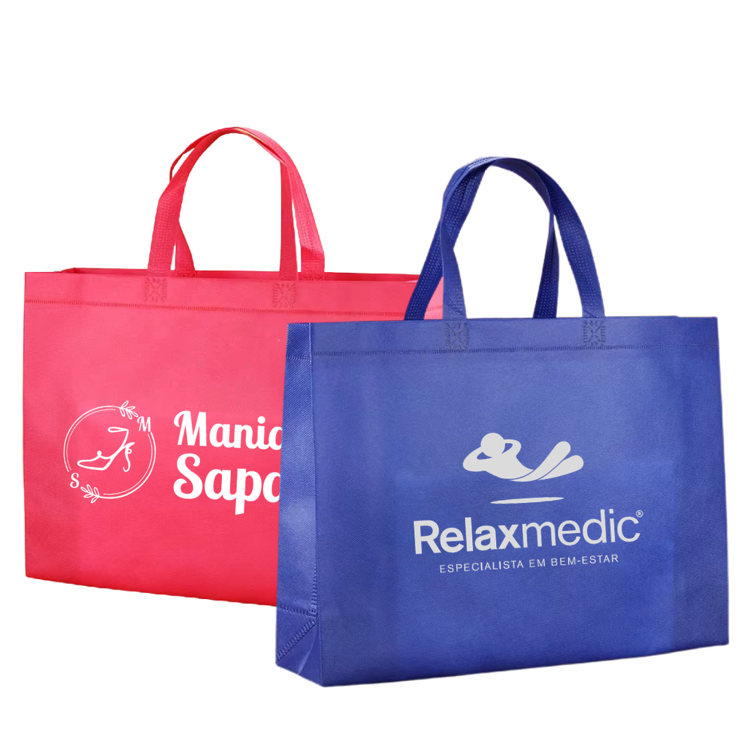 As sacolas em TNT com fole são reutilizáveis e ecológicas, reduzindo o impacto ambiental.